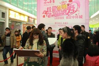 2014年2月14日,中环城三楼举办了“元宵浪漫夜 情定中环城,214让他证明对你的爱”大型活动,游戏、抽奖、手工制作玫瑰花……各个环节热闹有趣,温馨甜蜜。据了解,当天在中环城购物的顾客都可参与抽奖,赢取价值666元的中环城爱情套票和情侣钻戒。现场共有7对情侣参与游戏互动,更有一对情侣当众求婚,记录下这个19年一遇的“元宵邂逅情人节”的难忘夜晚。