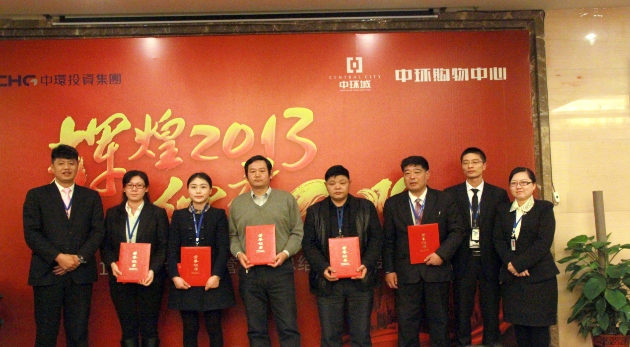 为表彰员工一年的辛勤工作,树立中环商管公司员工的典范,弘扬“小事做起、不说空话、脚踏实地、负重前行”的工作作风,促进公司积极进取、爱岗敬业、精诚合作的良好氛围,公司通过公平、公正、公开的方式选举出了2013年度商管公司优秀团队、商管精英、商管之星、长期服务奖项,优秀团队和员工纷纷上台亮相,接受表彰。