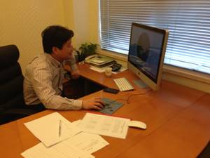 评委在认真浏览参评者作品图片