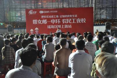 “把欢乐送进工地,让知识改变生活”。8月24日晚7点左右,合肥瑶海区坝上街旧城改造项目工地上热闹非凡,“帮女郎-中环 农民工夜校” 在这里准点开始。
