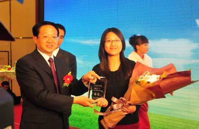 安徽省委常委、副省长、宣传部长唐承沛为集团代表颁发荣誉奖杯