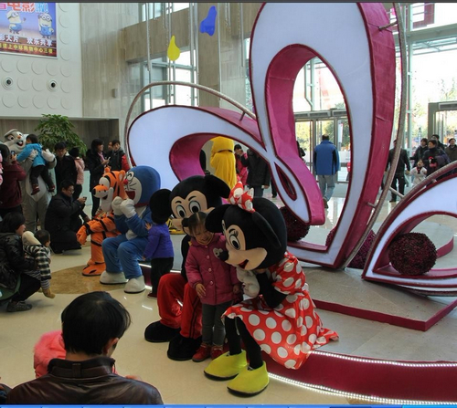 中环购物中心的大厅里,卡通明星们与孩子们玩得不亦乐乎。