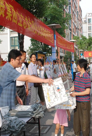 参加集团举办的送文化进社区活动,为东方名景业主发放礼品