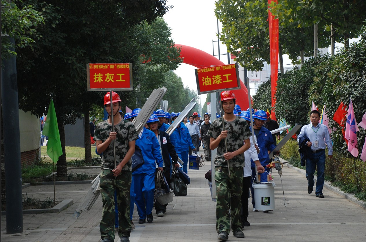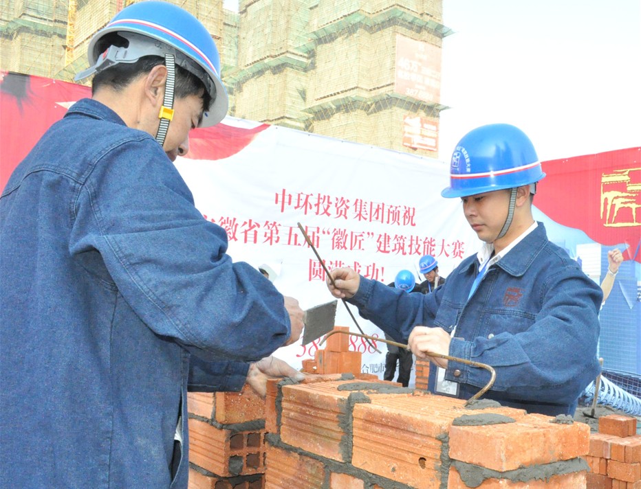 据了解,本届大赛由省住房和城乡建设厅主办,并由合肥市城乡建设委员会承办。于2011年10月11日至18日在淮南、合肥两个赛区举行。来自全省16个市及省建工集团的17支代表队共310名选手参加了砌筑工、抹灰工、架子工、油漆工、焊接工5个工种的比赛。截止至18日闭幕式,每个工种分别决胜出5名“徽匠”状元、2名“徽匠”标兵和3名“徽匠”能手。中环投资集团执行总裁乔晓戈出席了闭幕式。