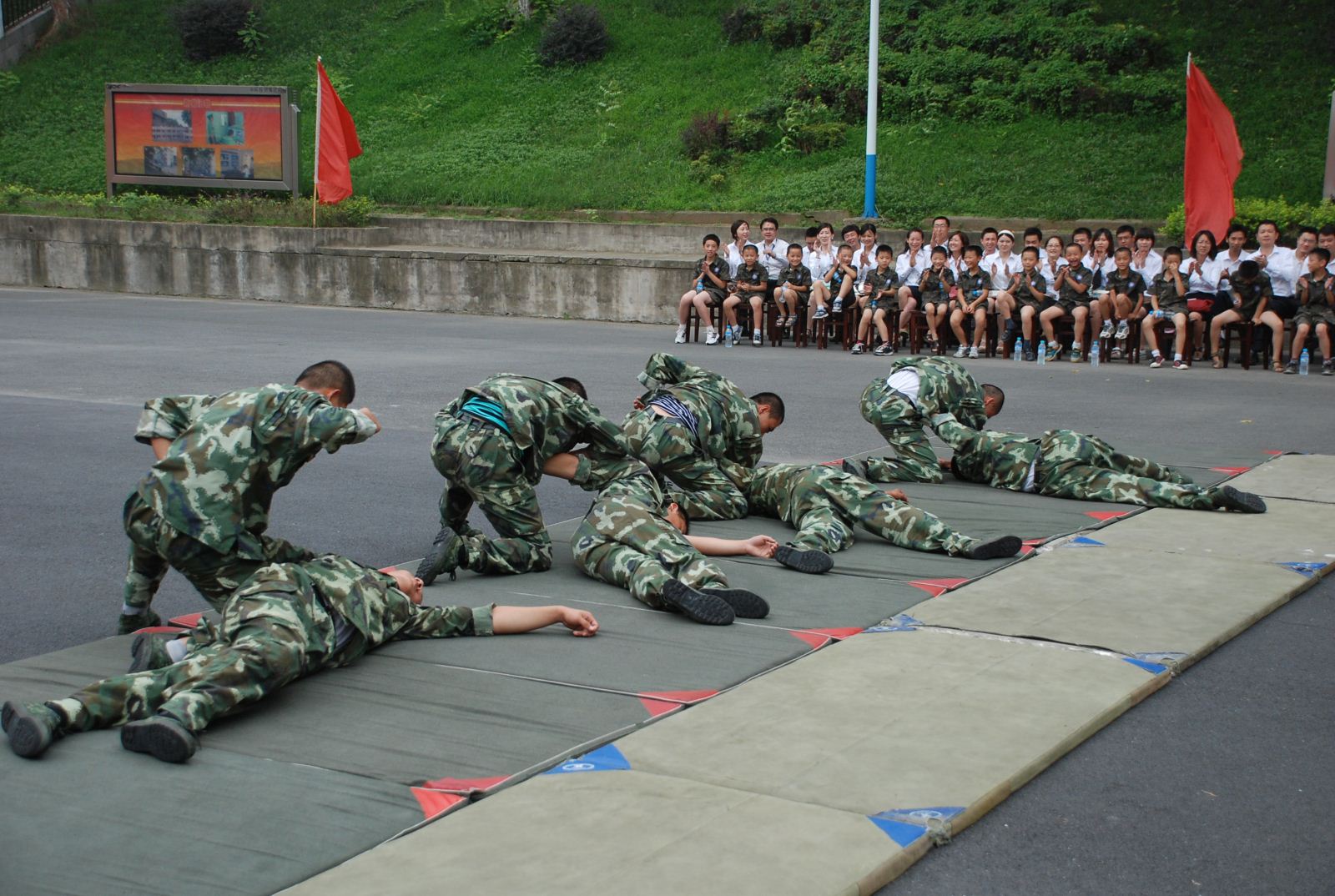 警卫连官兵献上了精彩的擒拿格斗等连场军事训练表演,坐在第一排的童子军们看得尤为认真。当发现他们熟悉的面孔时,孩子们纷纷指向场上,骄傲地叫道:“那是我教官!”原来,警卫连中有不少战士都曾经担任过童子军军训时期的教官,是孩子们接受国防教育的最早的老师。