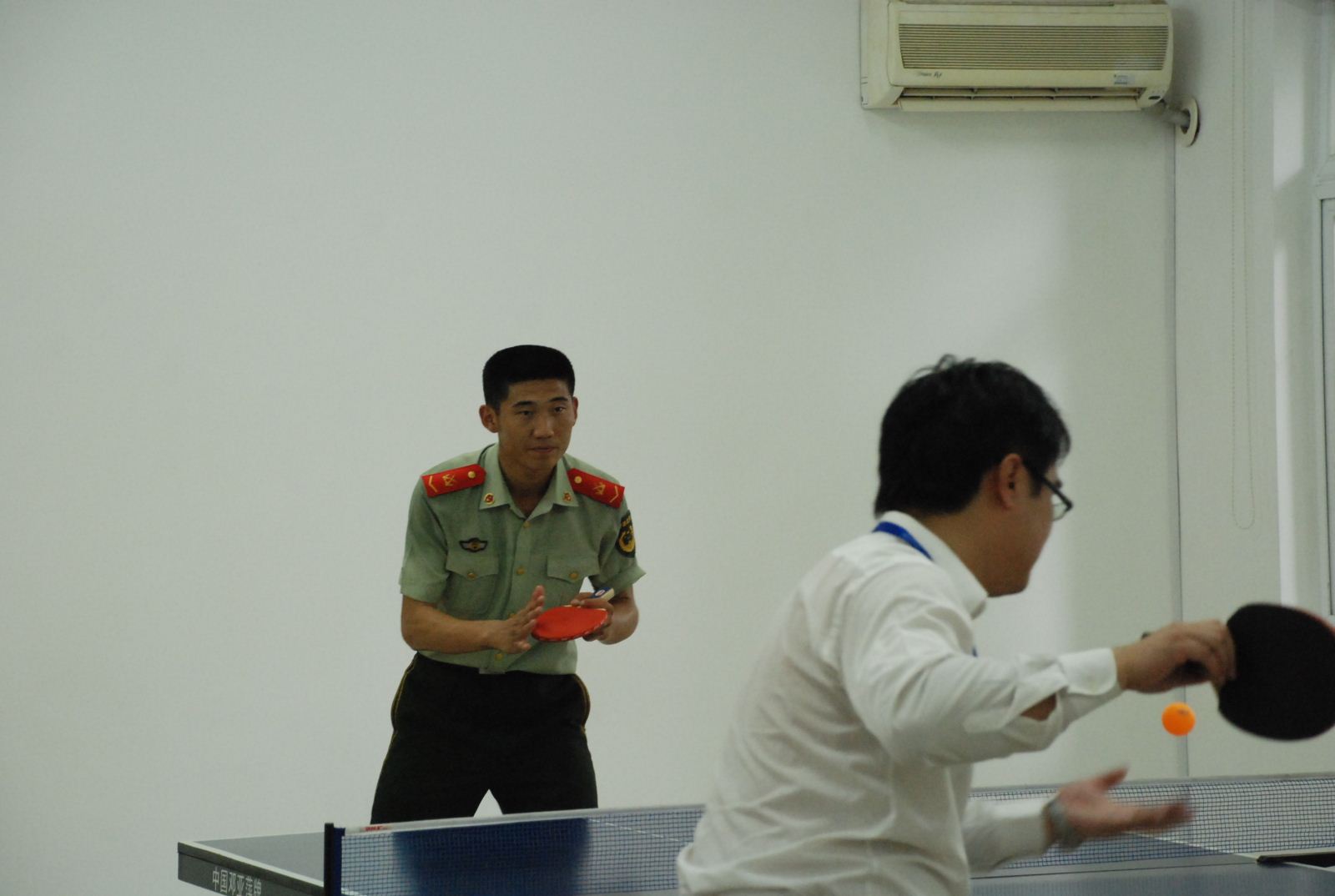 中环投资集团的员工和警卫连的领导杀起乒乓球