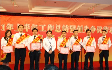 为庆祝建党90周年,深入推进党群共建创先争优活动开展,根据上级党委、工会、团委有关工作部署,集团党、工、团组织利用二季度的3个月时间,在集团公司全体员工中开展以“比爱岗敬业、比完成任务、比科学管理、比业务技能、比合理化建议、创和谐团队” 为主要内容的“五比一创”劳动竞赛活动。7月29日下午,集团公司隆重召开上半年工作总结暨创先争优劳动竞赛总结表彰大会,总结工作,树立典型,表彰先进,扎实推进党群共建创先争优活动深入开展。7名“优秀共产党员”、18名“爱岗敬业标兵”、12名“业务技能标兵”受到表彰。