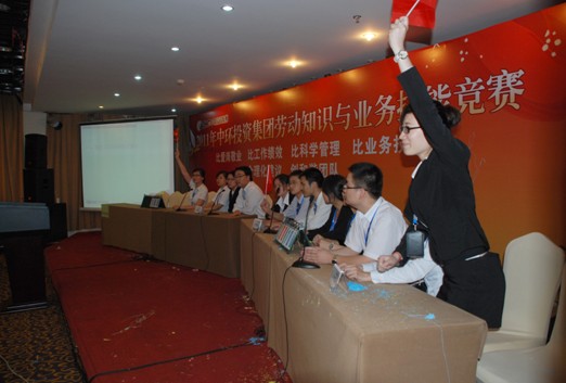 6月18日下午,2011中环投资集团劳动知识与业务技能竞赛在源牌大酒店会议厅拉开帷幕,主持人总裁办主任黄少铭开始介绍比赛,“2011年随着公司的不断发展,公司的人员队伍变得更加庞大,这次比赛共有22支队伍参赛,其中,工程技术模块7支队伍、营销商管模块6支队伍、行政管理模块9支队伍,比以往公司的任何一场比赛的参赛阵容都要强大,参赛队伍将按照工程技术、营销商管、行政管理三个系统模块分别进行比赛。”