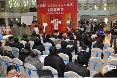 1月20日,由共青团安徽省委、安徽省青年联合会、安徽省青年书法家协会、安徽中环投资集团公司联合主办的第十届安徽省“名家书法走入百姓家”活动在合肥中环艺术馆隆重举行。省委宣传部副部长郎涛,省高级人民法院常务副院长、中国书法家协会理事、省书法家协会主席张学群,团省委书记王宏,省文联书记处第一书记庄保斌,团省委副书记、省青联主席张永,团省季副书记、省青联副主席汪华东,安徽省青联副主席、安徽中环投资集团董事长余竹云等领导莅临活动现场,省青联委员、两会青年代表、青年企业家近300名嘉宾出席了本次活动。