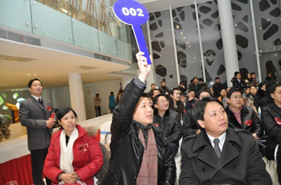 在“名家书法走进百姓家”十周年总结报告后,本次活动的高潮也随之到来。由安徽省数十名著名书法家联袂捐赠的近30幅作品的爱心义拍活动正式开始,在拍卖师的引导下,到场的众多嘉宾纷纷举牌参与竞拍,表达了对于慈善事业的热衷。当天所有的作品全部成功拍出,募集爱心义款数十万元。据了解此次募集的爱心慈善款将全额捐赠给希望工程,用于捐助贫困农民工子女。