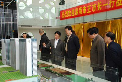 4月21日,中环投资集团迎来了一批尊贵的客人,淮南市委常委、副市长王诚率淮南市城乡建设委、国土资源局、城乡规划局、房地产管理局、山南新区管委会领导走进合肥中环城项目视察指导工作。