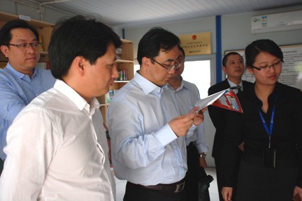 蓝天局长在中环城项目的参观了农民工雕塑广场、农民工学校和农民工图书室,并与中环投资集团公司管理层进行了座谈交流,在听取了董事长余竹云对中环城项目情况的介绍后,蓝天局长希望中环投资集团能够工程进度和商业招商步伐上齐头并进,早日峻工开业,在市场竞争中占据有利地位。