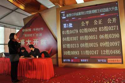 12月6日,是合肥近几周来难得的一个好天气,阳光明媚、风和日丽,中环城紫荆公馆“景观楼王”组团盛大开盘,上午9时许,在公证处工作人员的公证下,第一轮电脑摇号正式启动。在到场的近千名认筹客户中能够获得第一轮的选房资格无疑是幸运的。从第一批进场选房的客户脸上不禁露出欣喜、灿烂的笑容可以看出他们对中环城的喜爱以及他们对于在中环城未来生活的憧憬。