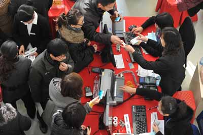 在开盘选房正式开始后,销售现场的气氛达到了沸点,在每一位客户认购后,现场工作人员均会准确的报出销售信息并用掌声为成功选房的客户表示感谢和恭贺。虽然到场有近千名客户,但是在工作人员精心组织和耐心引导下,选房流程有条不紊的进行着,在工作人员第一次点燃恭贺礼炮的时候,这意味着在不到一个小时的时间就已经有100套中环城房源被成功定购。