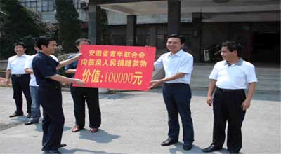 图三:安徽省青年联合会向临泉县灾区捐赠款物价值:100000元