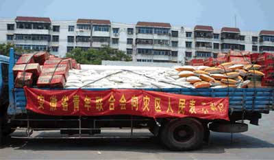 为了帮助灾区人民减轻困难,度过难关,重建家园,安徽中环投资集团公司通过团省委和安徽省青年联合会向灾区人民捐赠价值3万元的大米、面粉、方便面、色拉油和1万元现金。