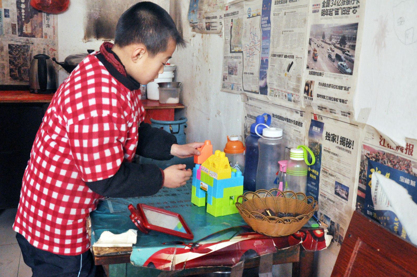 和其他有自闭症儿童的家庭一样,王奶奶带着孙儿小杰(化名)租住在黄巷村,也是为了让孩子离康复中心近一些。但即便是每个月260元的房租,也仍然让这个老人愁眉紧锁。小杰的母亲精神失常,生活不能自理。父亲在寿县老家以务农为业,收入很低,一根锄头系着一家人的衣食饱暖。家里的被褥还是房东买的,已经受潮严重,微微发霉。小杰的小手冰凉,总是不自觉地藏在兜里。