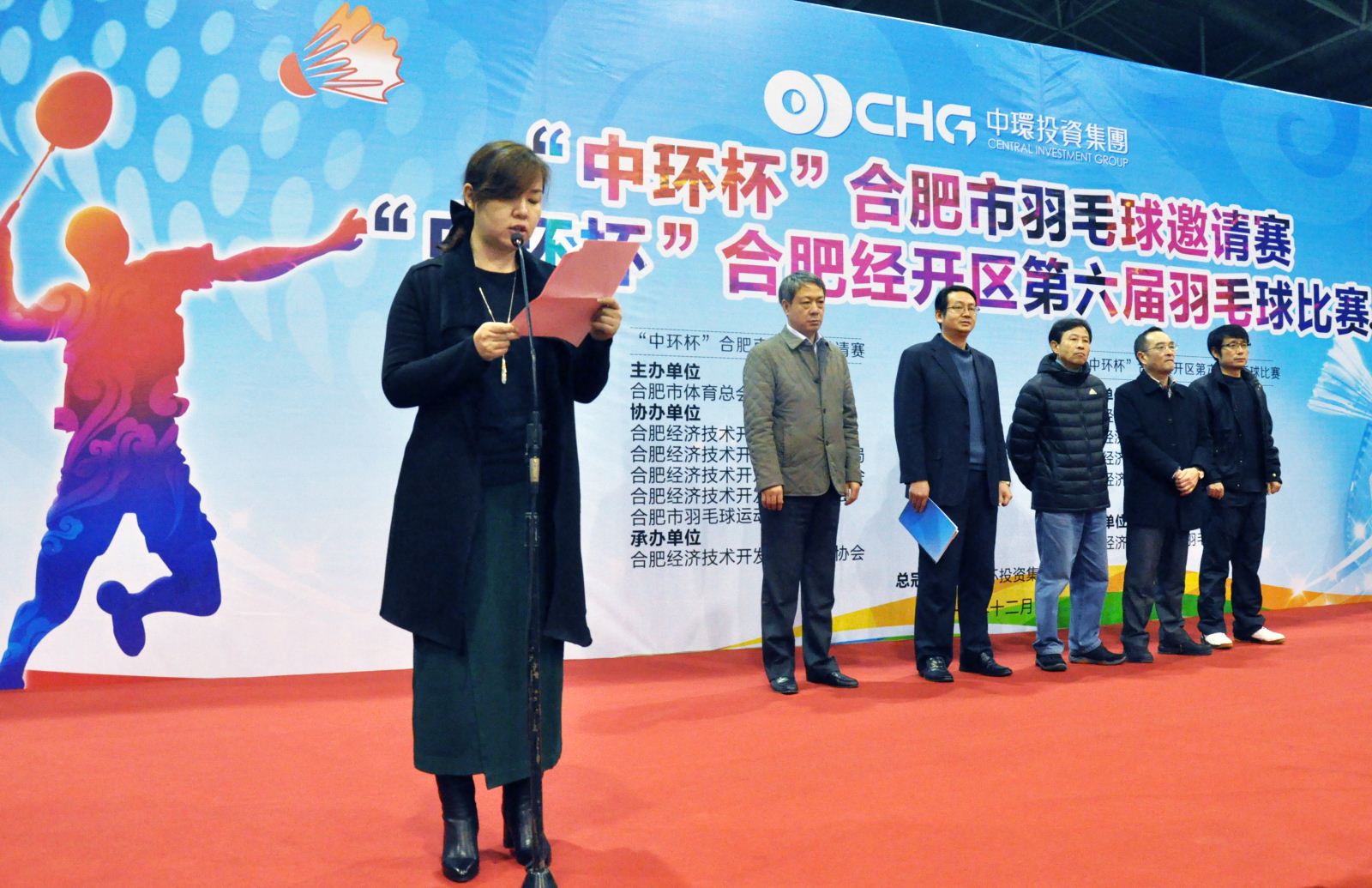 12月5日上午8点半,由中环投资集团赞助冠名的“中环杯”合肥市羽毛球邀请赛,“中环杯”合肥经开区第六届羽毛球大赛在国际会展中心羽毛球馆启动。合肥市体育局局长菅青、经开区管委会调研员王刚、经开区社会发展局局长李应天、经开区企业党委书记、工会联合会主席陈龙章、合肥市羽毛球运动协会主席袁斌、安徽中环投资集团党委书记、营销公司总经理朱玉娟等领导出席了开幕式。