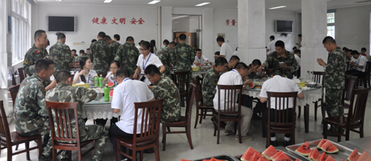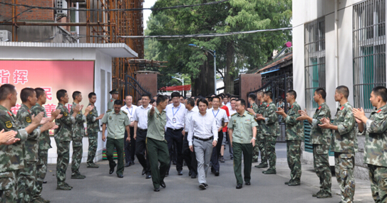 值此隆重庆祝和纪念中国人民解放军建军88周年之际,8月1日上午9时,安徽中环投资集团有限公司董事长余竹云,怀着深厚情谊,带着满腔祝愿,率领集团近百名员工,来到安徽省委警卫中队慰问全体官兵并过“军事日”,体验部队生活,共享军民鱼水情。