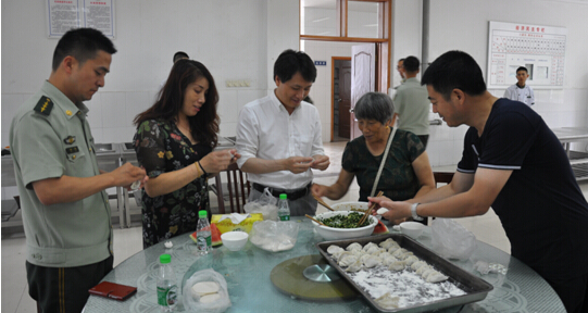 余董事长和部队领导一起动手包饺子