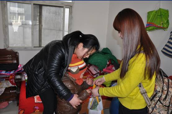 1月18日,“大爱中环·牵手童心”最后一站来到合肥包河区黄巷村,中环志愿者们带着爱心走进两名孤独症患儿家庭,为他们送来粮油米面以及棉服等生活必需品。