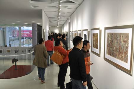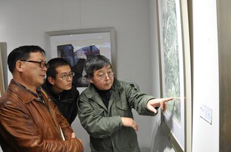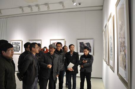 安徽省美协名誉主席章飚等人在中环集团总裁助理黄少铭陪同下参观画展