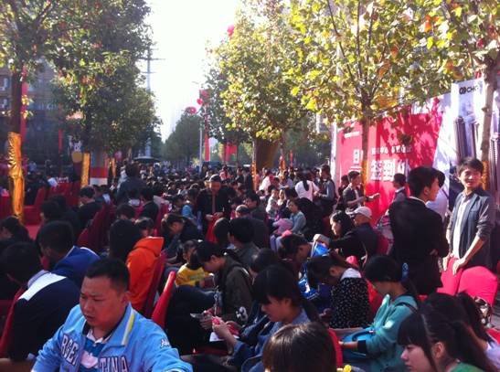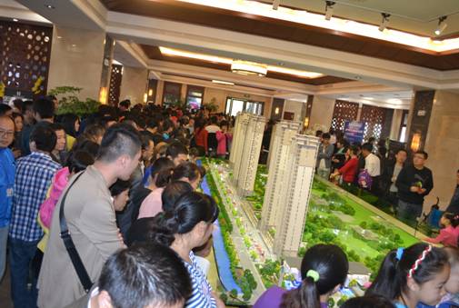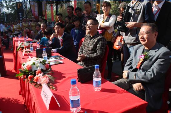 10月25日早上,天朗气清,中环营销中心在金色的拱门、红色的地毯和鲜艳的花篮装饰下,充满着喜悦的色彩。8时许,热情高涨的嘉宾与客户络绎不绝从四面八方赶来,在迎宾人员的接待下,纷纷穿过红地毯,签到并领取抽奖券,而后落座观礼。