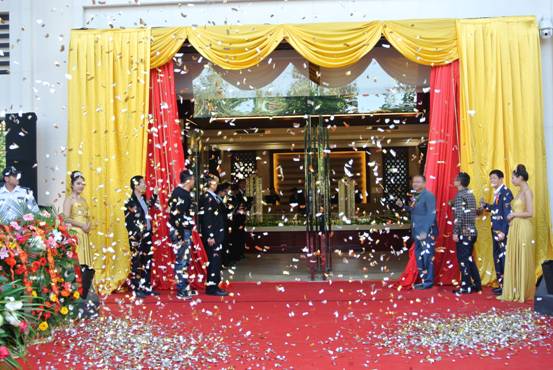 约9时58分,在主持人的宣布下,在隆重的礼炮声中,各位领导行至营销中心门口,进行隆重的揭幕仪式,标志着项目正式面世。人们纷纷至营销中心内部进行参观。在典雅精致的沙盘前,详细询问项目信息。部分来宾在享用精美餐点的同时,还参与经典的拉斯维加斯casino游戏,赢取礼品。活动最后,中环·湖滨公馆将精心准备的中环城中影国际影城电影票,送给各位来宾。
