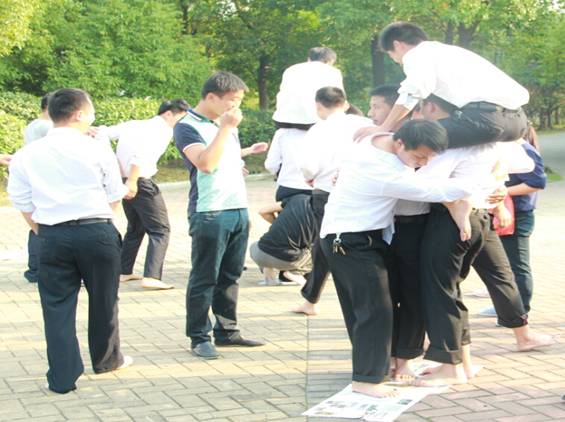 在竞技游戏环节,组织了“七人八足、挑战极限、夺军旗”等既有趣、又充分体现团队合作意识的训练项目。其中队员们勇于挑战,大胆尝试,总结反思的精神在本次拓展培训中表现的尤为突出。