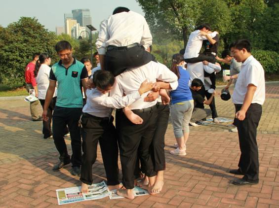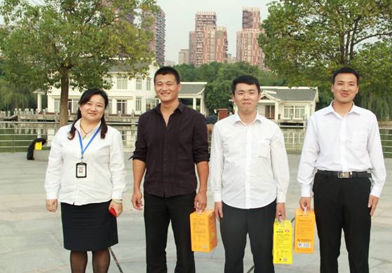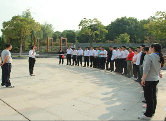 2014年10月9日下午,商管公司组织员工在翡翠湖公园进行拓展培训,本次拓展培训分为破冰分组、竞技游戏、培训分享三个环节,商管公司副总经理赵晖、王雯出席参加,并为优胜队及优秀队员颁发了奖品。