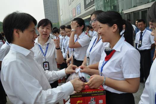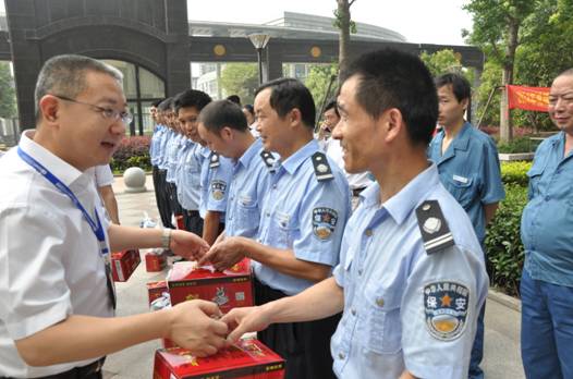 随着夏季的来临,天气气温不断升高。为及时做好夏季防暑降温工作,保护在高温期间劳动生产过程中员工的身心健康和人身安全,集团董事长余竹云继7月9日亲自为合肥中环北城项目工地农民工“送清凉”,发放防暑降温用品,为农民工宿舍赠送安装空调后,紧接着又于9日下午至11日上午,和集团执行总裁乔晓戈、总裁助理黄少铭,总裁助理兼商管公司和集团行政人事管理中心总经理朱玉娟、集团项目管理中心总经理刘伟、集团工会主席汪本银等领导,深入一线慰问合肥中环北城置业公司、经开区项目公司、物业公司、商业管理公司、文化传播公司等一线员工和集团公司员工,为一线员工“送清凉”,撑起一片关爱之“伞”。