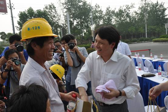 7月9日,2014年中环投资集团关爱建设者系列活动在北城中环城正式启动,北城项目工地200多名建筑工汇聚一地。当天,长丰县北城新区常务副主任杨毅、中建四局六公司总经理杨军、中环投资集团董事长余竹云及相关领导均有出席,见证了这份爱心传递。
