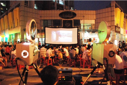 放了十几年露天电影的郭姓放映员第一次看到主办方为观众认...