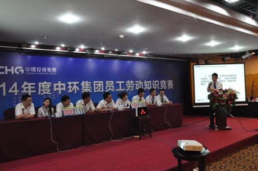 2014年6月6日,在一阵嘹亮的国歌声中,中环投资集团员工劳动知识竞赛在经开区源牌大酒店开幕,集团董事长余竹云、各中心、子公司负责人出席了本次活动。比赛共分三个模块举行,共有26支代表队参赛、200多名员工到场。