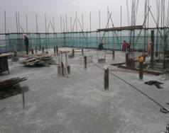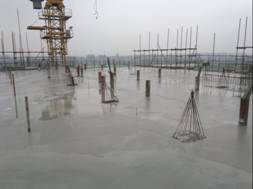 原定封顶二级节点要求时间为2014年5月31日完成,但这当中却发生了一些小插曲。由于上海召开第四次亚信峰会,政府对于河道运输禁航,于是5月17-27日,整个上海的搅拌站砂石料都没有。这急坏了倪庆总经理带领的工程团队。团队经常会唠叨一句话:饭能晚吃,觉能不睡,但工程节点一定要完成!。在所属搅拌站没有砼的情况下,各方积极协调,顶着炎炎夏日,项目工程部协调总包劳动力合理分配施工,并配合总包协调外围搅拌站供料的努力下,2栋主体结构在6月1日上午圆满完成主体结构封顶浇筑施工。