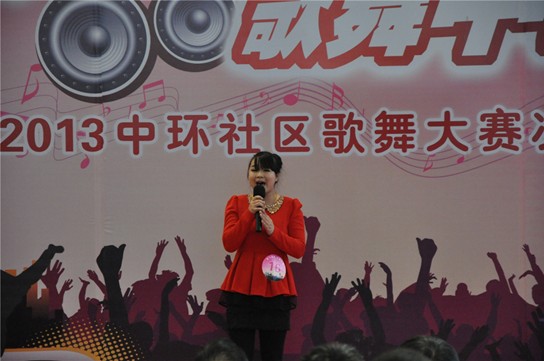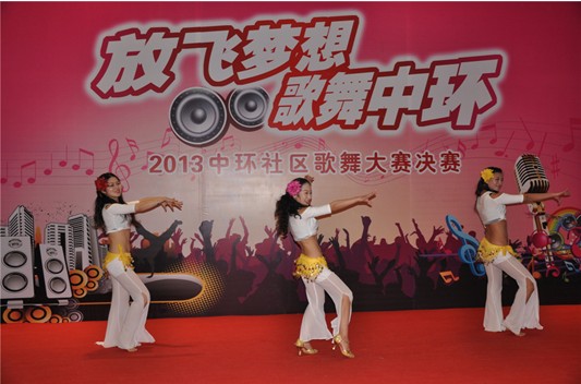 用音乐的小舞台,实现业主的大梦想,经过三场海选的持续预热,“放飞梦想,歌舞中环”2013中环社区歌舞大赛的决赛暨颁奖仪式于12月21日下午14:30,在中环城艺术馆隆重举行。据了解,较之往年,本年增加了舞蹈比赛环节。当天不仅有精彩的歌唱比赛,还有美轮美奂的舞蹈表演。将现场演绎成一场歌唱与舞蹈相结合的业主联欢盛会。
