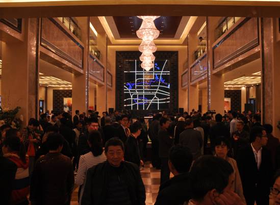 3月29日早,北城中环城接待中心准时璀璨开放。虽然一场不可预计的春雨降临合肥,阻碍了人们的出行,而位处阜阳北路与泉阳路交口的接待中心里却一片人头攒动,热闹喜庆。从上午7点开始,不断有客户驾车冒雨而来,甚至拖家带口赶赴现场,至活动正式开始,近千余人挤满了接待中心,可见北城中环城魅力非凡。