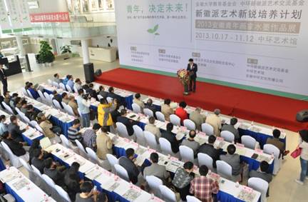 2013年10月17日下午3时,中环新徽派艺术新锐培养计划——2013安徽青年画家水墨作品展在中环艺术馆盛大开幕。安徽省人大常委会原副主任、安徽大学教育基金会驻会高级顾问吴昌期,安徽省人大原副主任、安徽大学教育基金会高级顾问陈瑞鼎,安徽省人大原副主任张春生,安徽大学教育基金会理事长孙献忠,安徽大学教育基金会常务副理事长李传银,安徽省美术家协会主席张松、安徽省美术家协会秘书长杨国新、安徽省美术家协会副主席巫俊,安徽省书画院副院长方贤道,著名艺术家王涛、王仁华、胡礼惠,中环投资集团董事长余竹云,获奖作者、书法绘画爱好者参加开幕式。